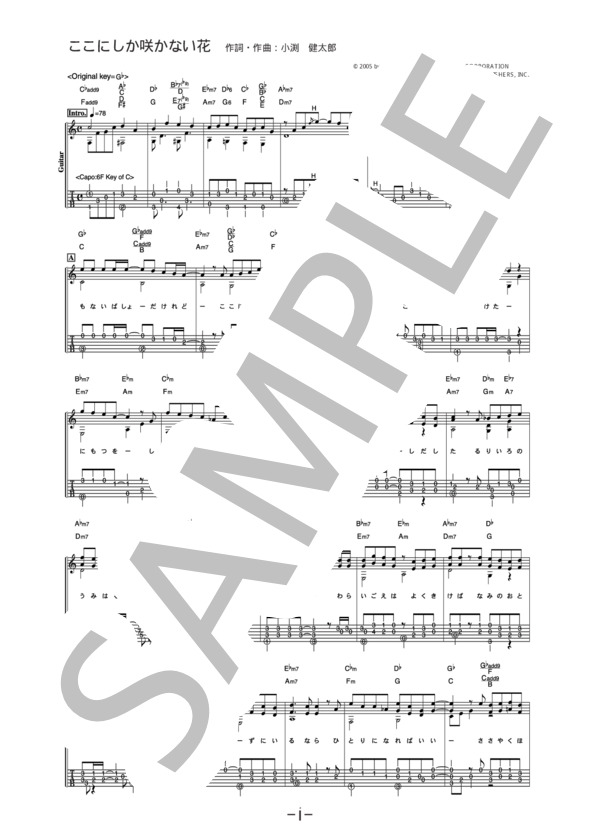 楽譜 ここにしか咲かない花 コブクロ ギターソロ譜 コブクロ ギターソロ 中級 Piascore 楽譜ストア