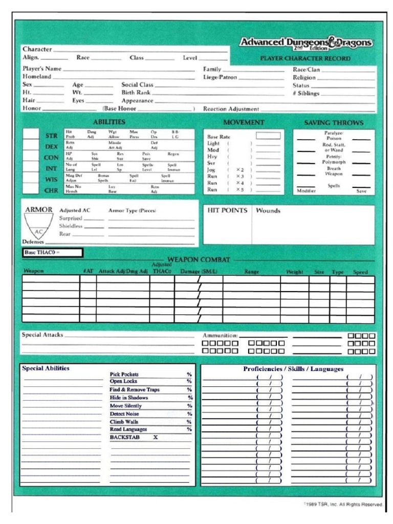 Dungeons And Dragons 2nd Edition Character Sheet Pdf