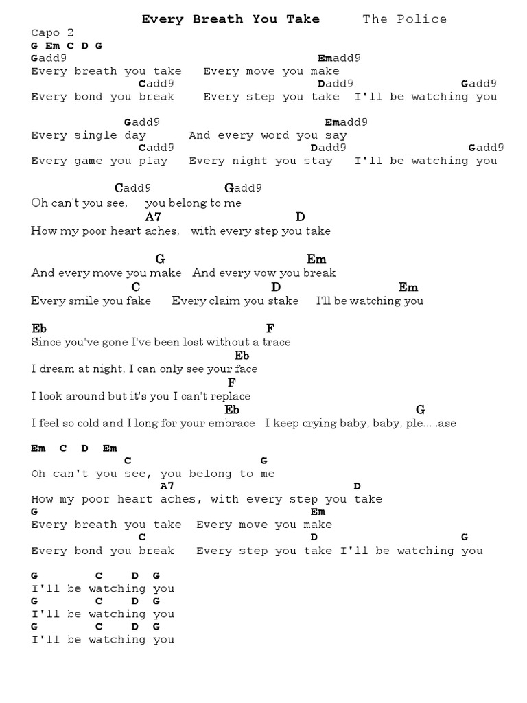 Song Every Breath You Take By Sting With Lyrics For Vocal Performance And Accompaniment Chords For Ukulele Songs Ukulele Chords Songs Guitar Chords For Songs