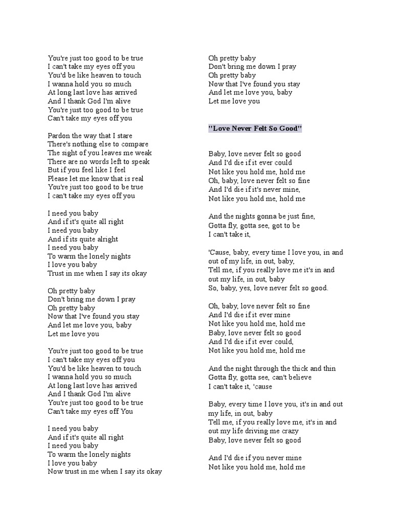 Love Never Felt So Good Leisure Entertainment General